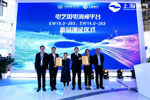 10月18日,在北京国际风能大会暨展览会(CWP2023)创新剧场,上海电气风电集团股份有限公司(以下简称“电气风电”)海陆新品重磅发布。中国质量认证中心为电气风电海神平台两款新品颁证。