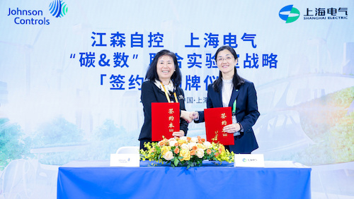 江森自控副总裁兼亚太区暖通空调与冷冻业务总经理徐申娟,上海电气副总裁阳虹代表双方在协议上签字。